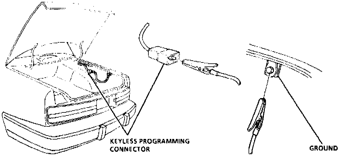 Perform the following procedure whenever the keyless programming connector is grounded, the keyless entry receiver is replaced, the transmitter is replaced or a second transmitter is added.