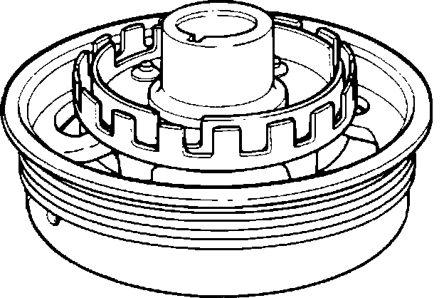 7. Using special tool J38197, remove crankshaft harmonic balancer