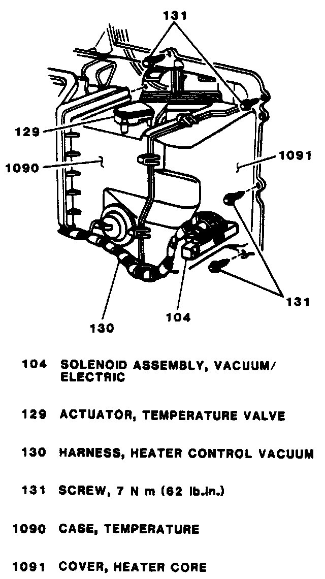 5. Vacuum/electric solenoid assembly to heater core cover and tighten the two screws to 7 Nm (62 lb in).
