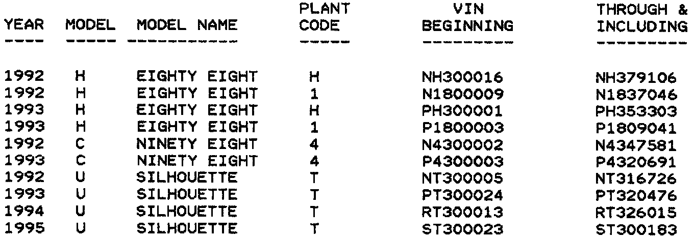 Involved are certain (not all) 1992-1993 Oldsmobile Eighty Eight and Ninety Eight model vehicles. Also involved are certain (not all) 1992-1995 Oldsmobile Silhouette model vehicle equipped with the 3800 engine (RPO L27) without trailer towing (RPO V92). The involved vehicles are located in the twenty-seven (27) states listed (see "STATES INVOLVED") and within the VIN breakpoints as shown.
