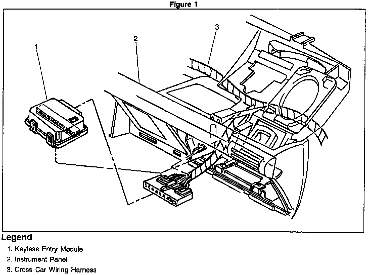 The Remote Keyless Entry (RKE) module is incorrectly shown in Figure 2, Page 9K-4 (1994 Service Manual), Page 9K-3 (1995 Service Manual).