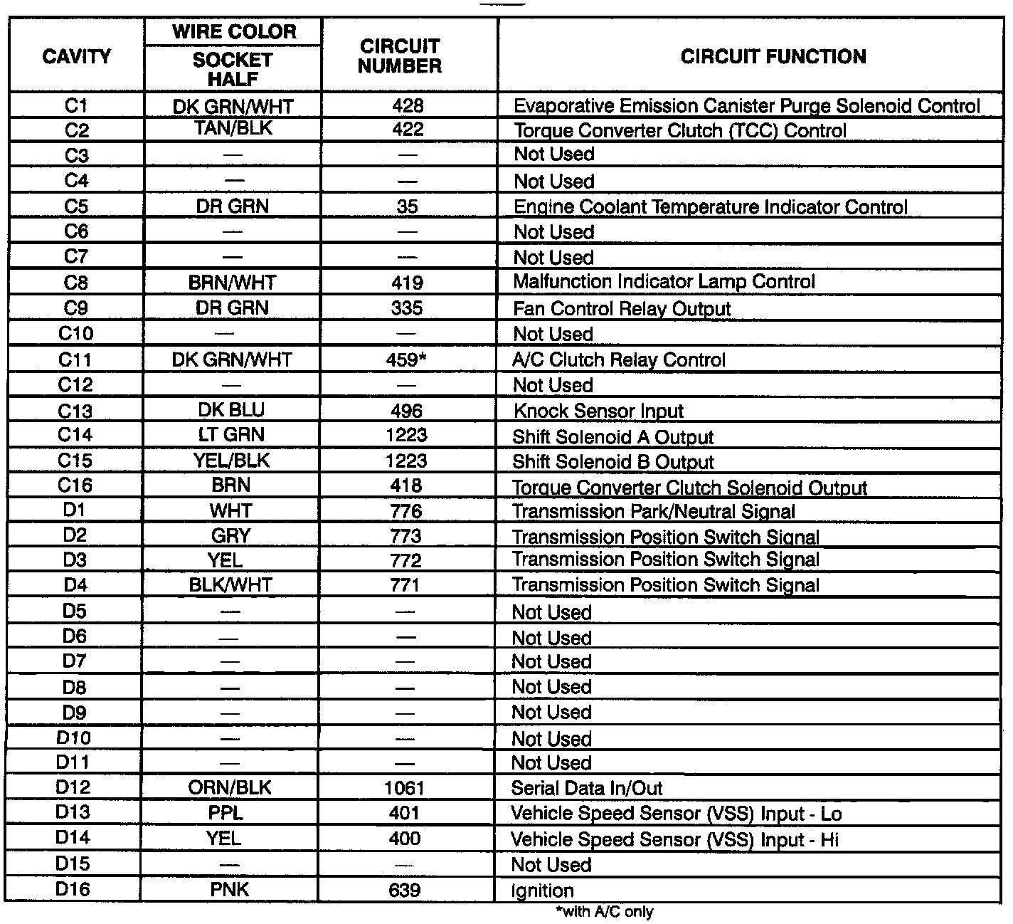 Multiport Fuel Injection: PCM Connector : C3: