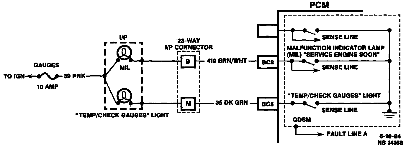 The QDSM has a separate fault line to indicate the presence of a current fault to the PCM's central processor. A scan tool displays the status of each of these fault lines as "Low" (OK), "High" (Fault).