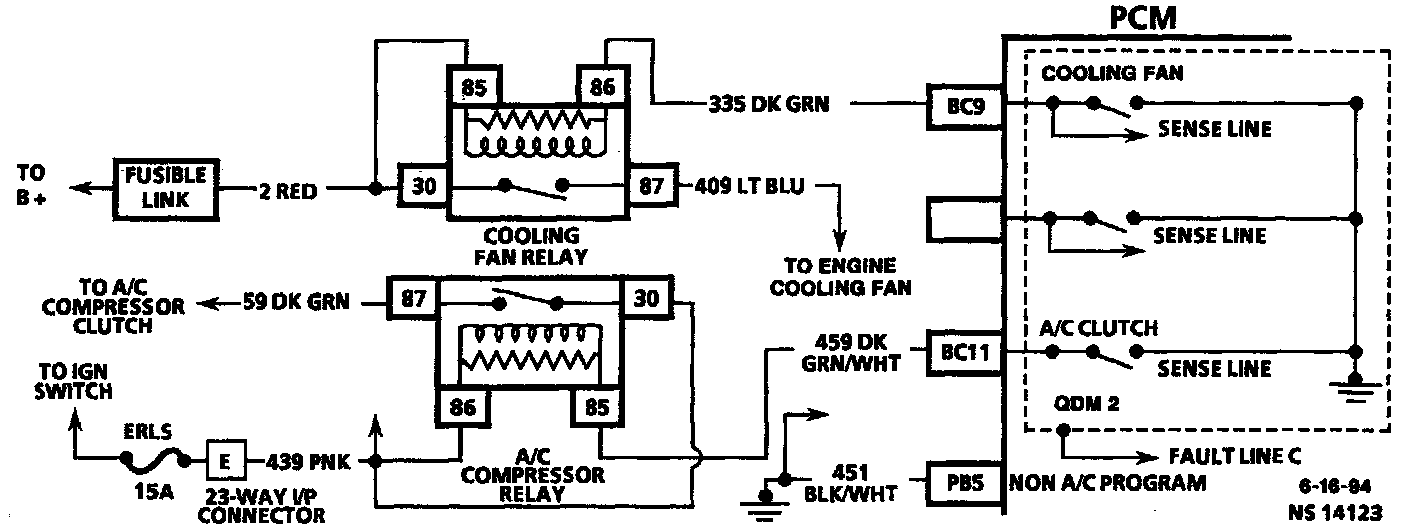 ^ A Tech 1 scan tool has the ability to command the coolant fan and A/C clutch relays "ON" and "OFF."