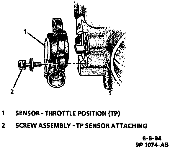 1. With throttle valve in normal closed (idle) position, install throttle position sensor on throttle body assembly.