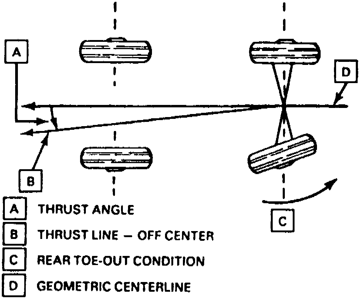 . The path the rear wheels follow is the thrust angle,
