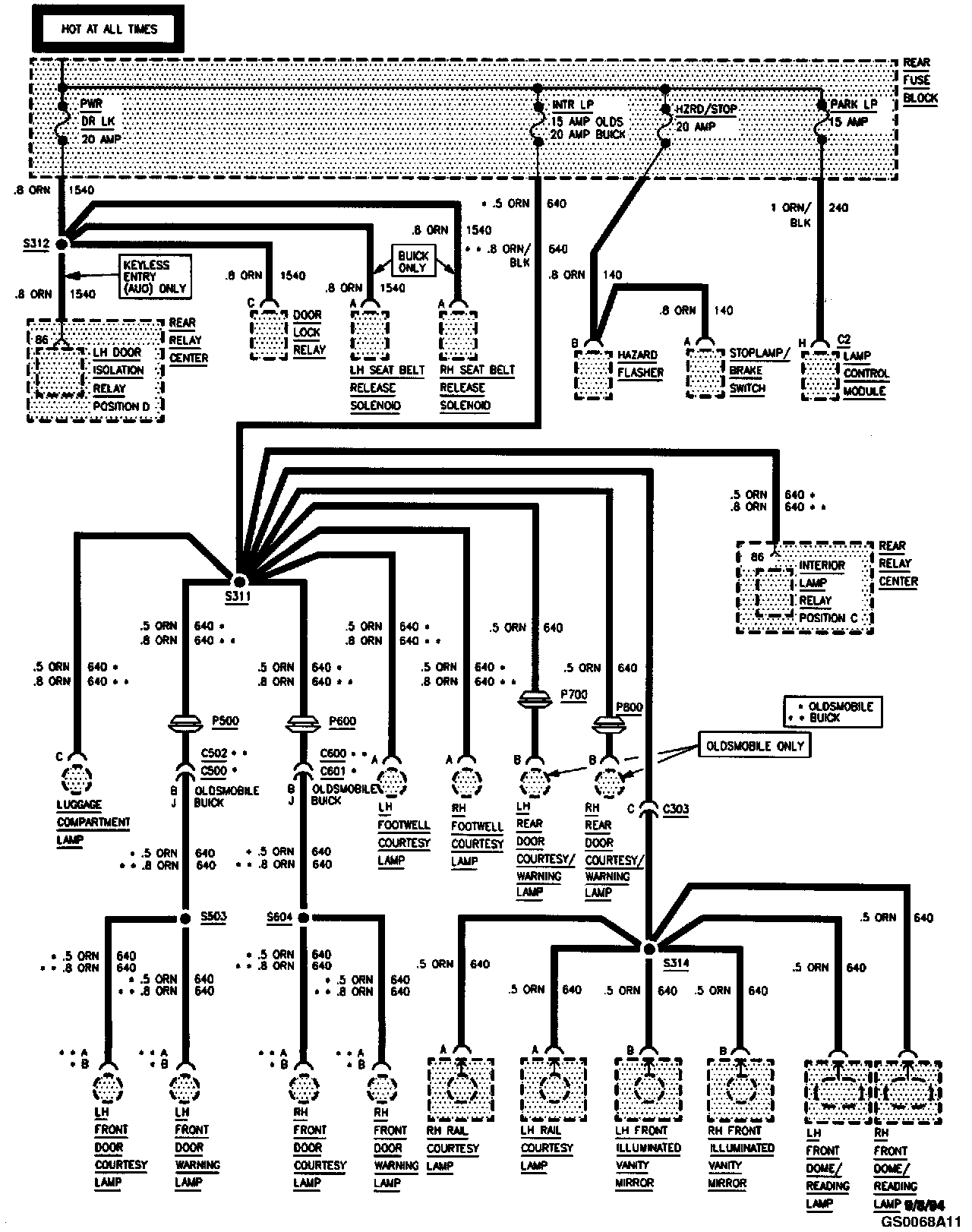 PWR DR LK Fuse, INTR LP Fuse, HZRD/Stop Fuse/Park LP Fuse: