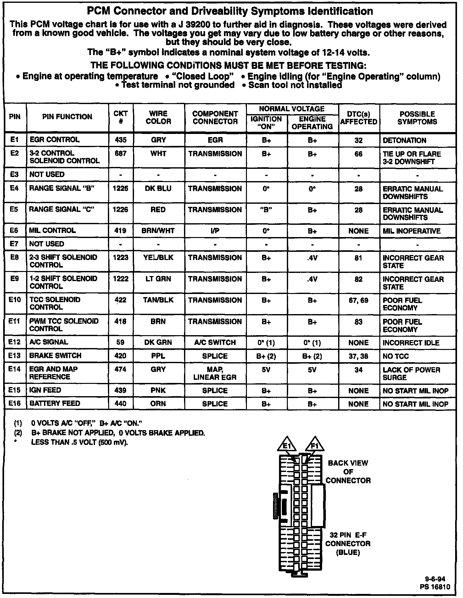 PCM Pinout/Terminal ID Charts