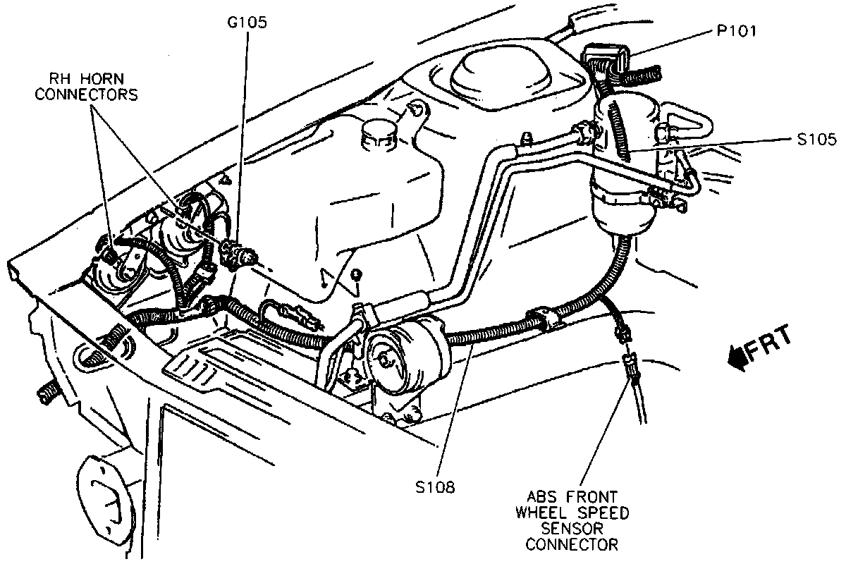 Horns And Horn Grounds, RH Side Of Engine Compartment: