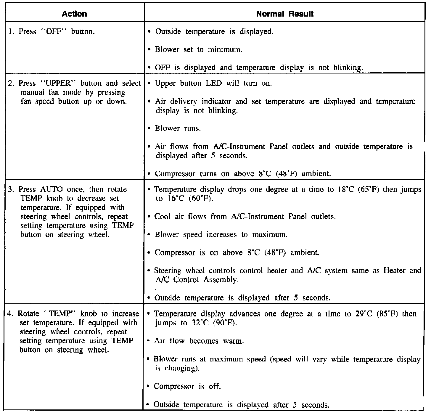 1. If engine was recently running, a purge delay of approximately 20 seconds may be encountered before a selected mode is activated. This delay is normal and is designed to prevent windshield fogging.