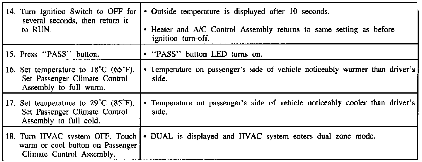 Dual Zone Air Conditioning Response Chart (Part 2):