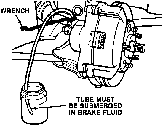 8. Attach a transparent tube to bleeder valve, submerge other end of tube in a clear container partially filled with clean brake fluid.