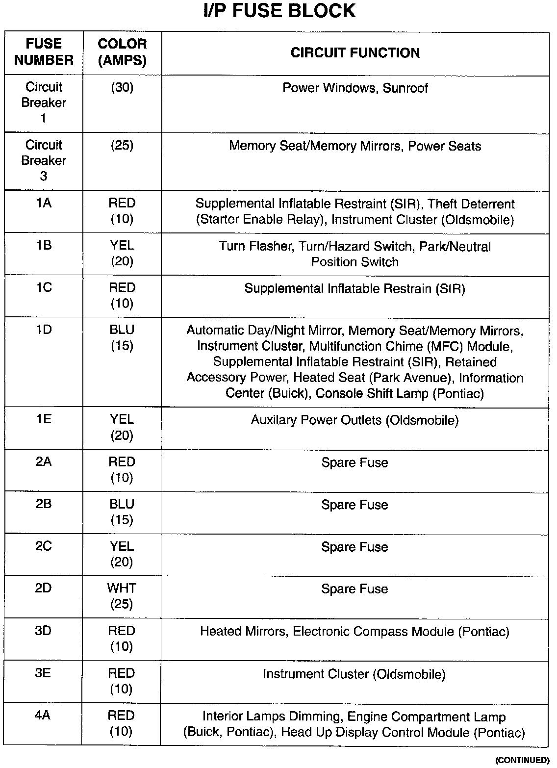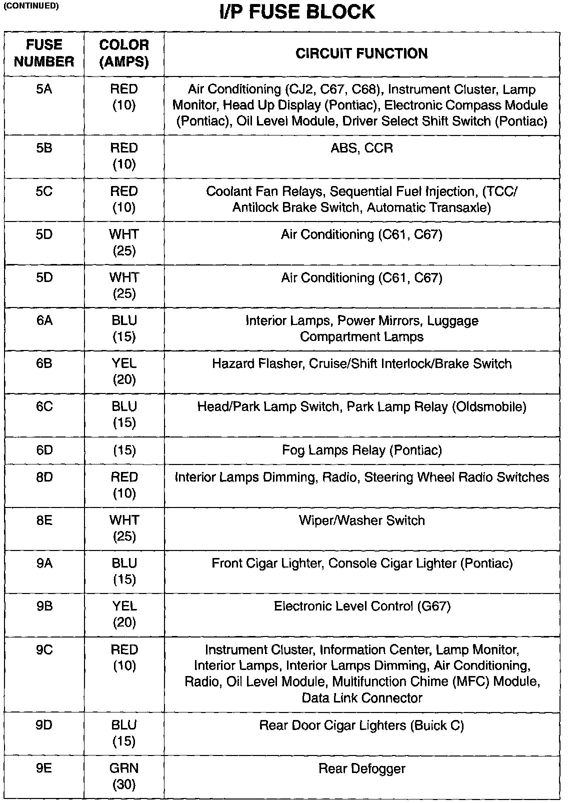 I/P Fuse Block/Relay Center Details: I/P Fuse Block: