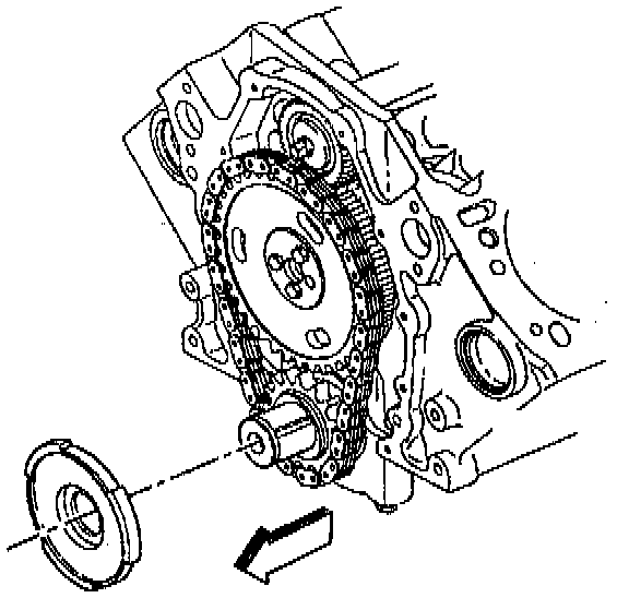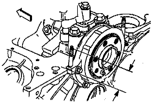 3) Install the crankshaft balancer hub with the cast arrow on the hub in the 12 o'clock position.