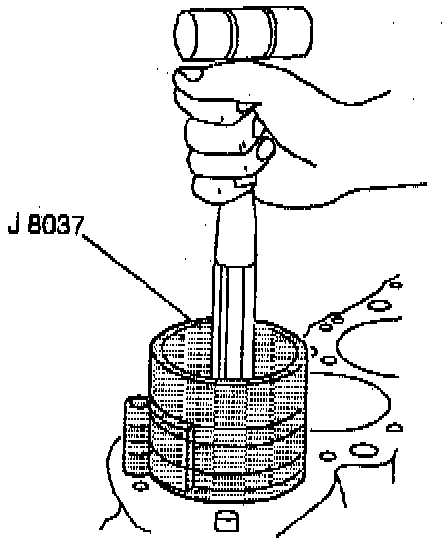 e. Install them crankshaft rear oil seal installer onto the rear of the crankshaft.