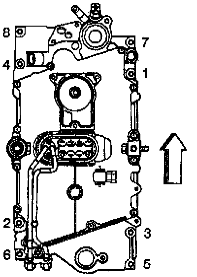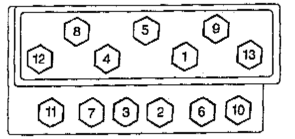 ^ Tighten the long bolts (1, 4, 3, 5, 9 ) 75 °.