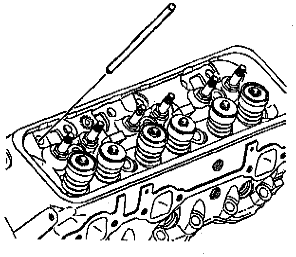 a. Apply sealer GM P/N 12345493 or equivalent to the threads of the new valve rocker arm ball stud.