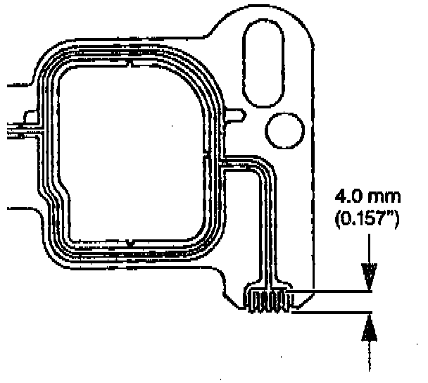 d. Apply a 5 mm (0.197 inch) bead of the RTV (GM P/N 12346192 or equivalent) to the back of the engine block sealant areas. Extend the RTV bead 13 mm (0.499 inch) up the cylinder head in order to seal and retain the gaskets.