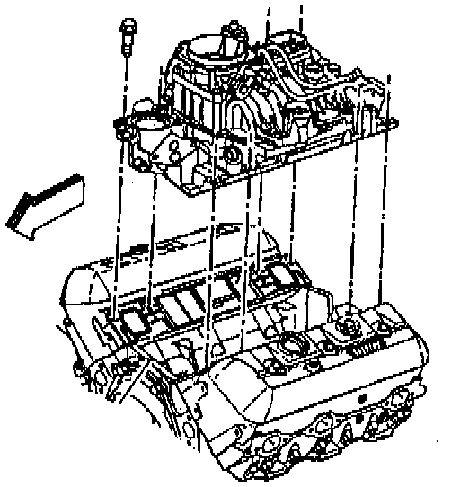 NOTE: Install two stud bolts through the upper intake manifold diagonally opposite from each other to aid in positioning upper intake manifold to the lower intake manifold.