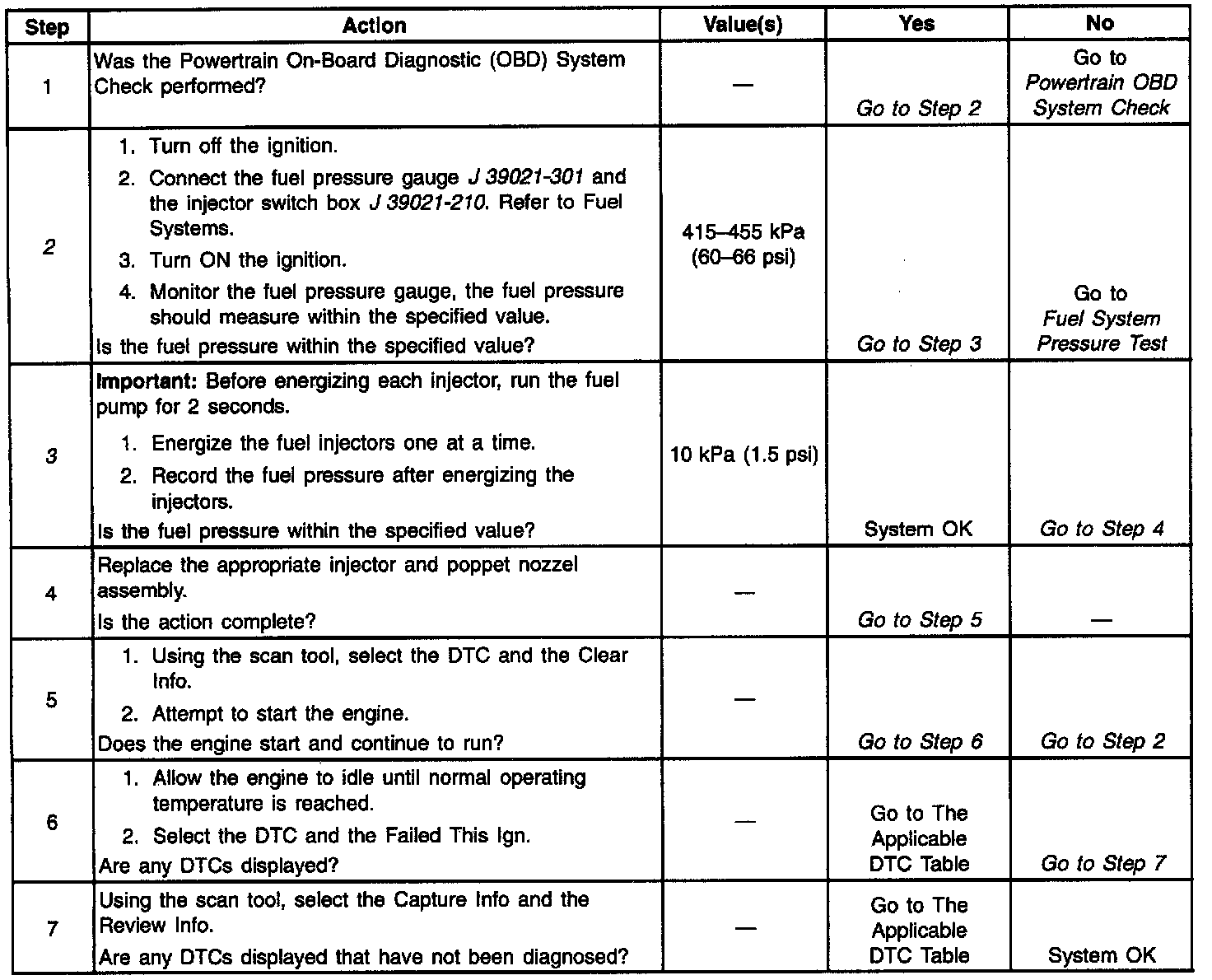 3. This step check for a decrease in the fuel pressure after the energizing each injector.
