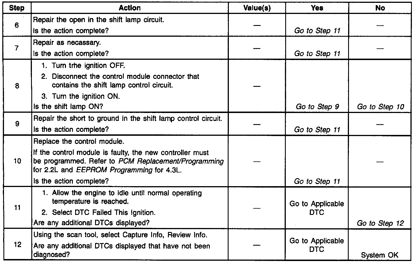 1. This step checks the control module's ability to control the shift lamp.