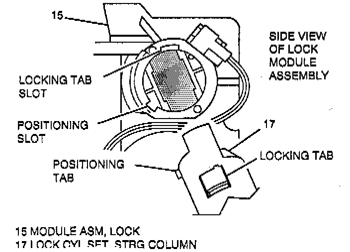 - Locking tab on end of cable (48) to slot in lock module assembly (15).