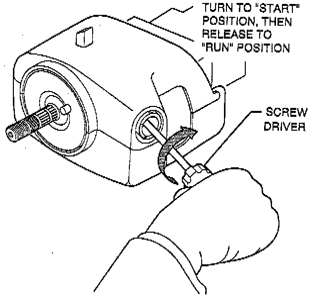 b. Insert key and turn to "RUN" position.