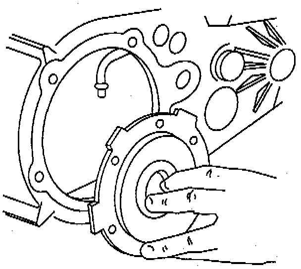 - Apply RTV GM P/N 12345739 or equivalent on bearing retainer mating surfaces.