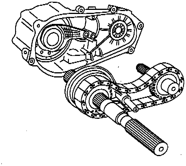 9. Front output shaft into chain and into front case half.