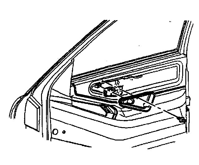 2. Handle bezel from door trim panel by prying at rear with lever in locked position.