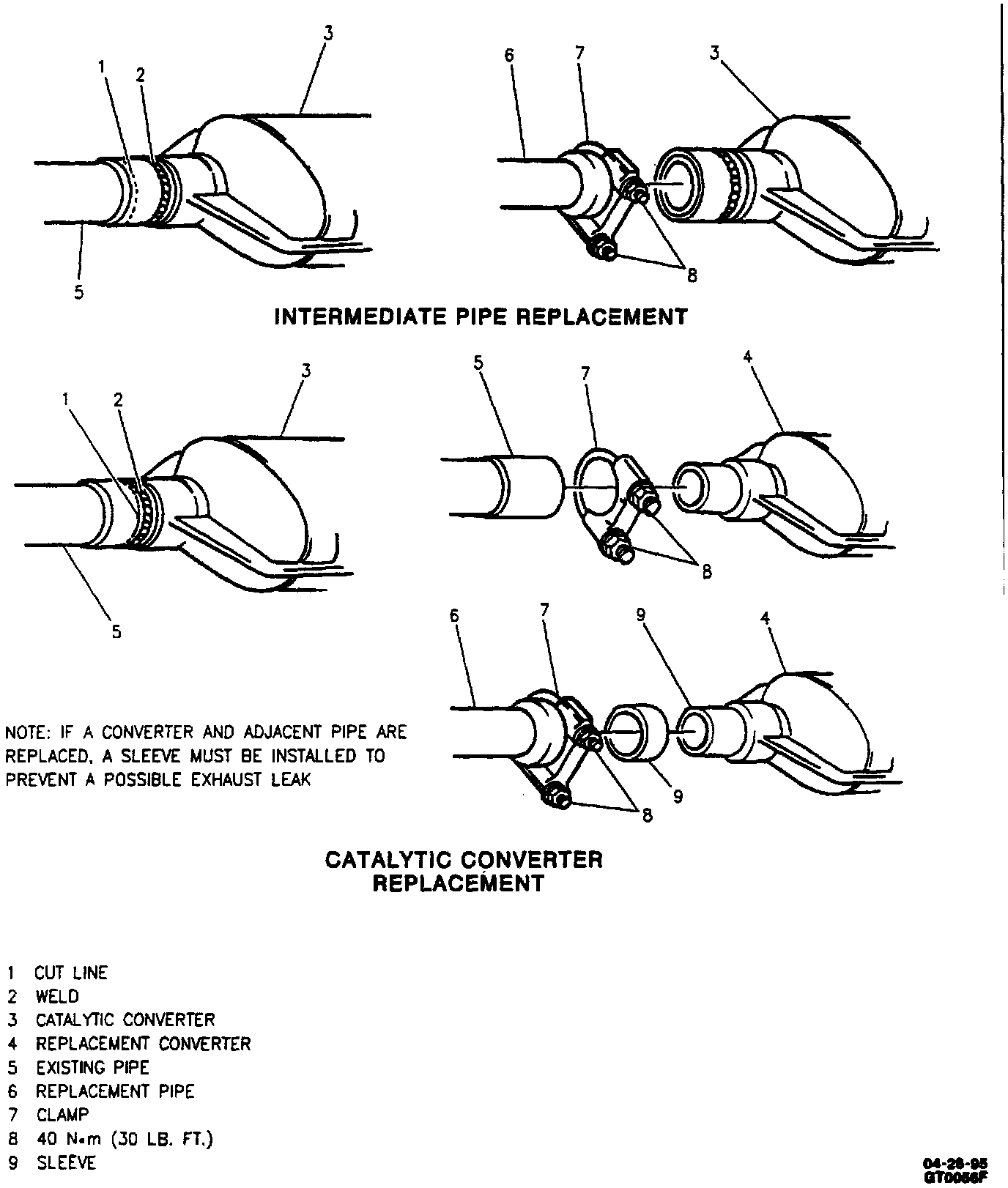 NOTE: Position intermediate pipe for needed clearance during converter installation.