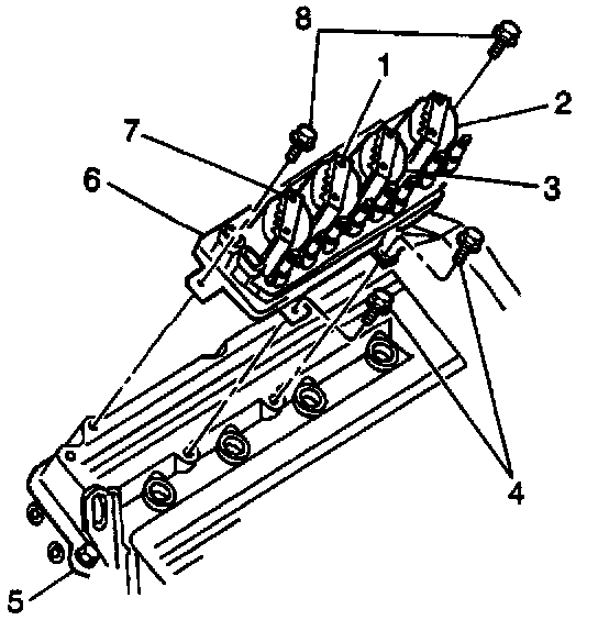 5. Ignition coils from IC module assembly (1, 2, 3, and 7).