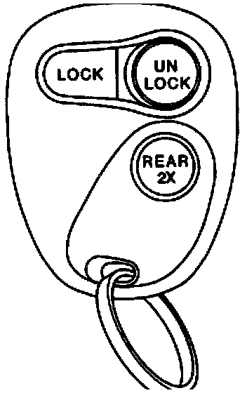 The remote keyless entry (RKE) system operates by means of remote control to lock and unlock the vehicle doors and to release the rear window on utility models.