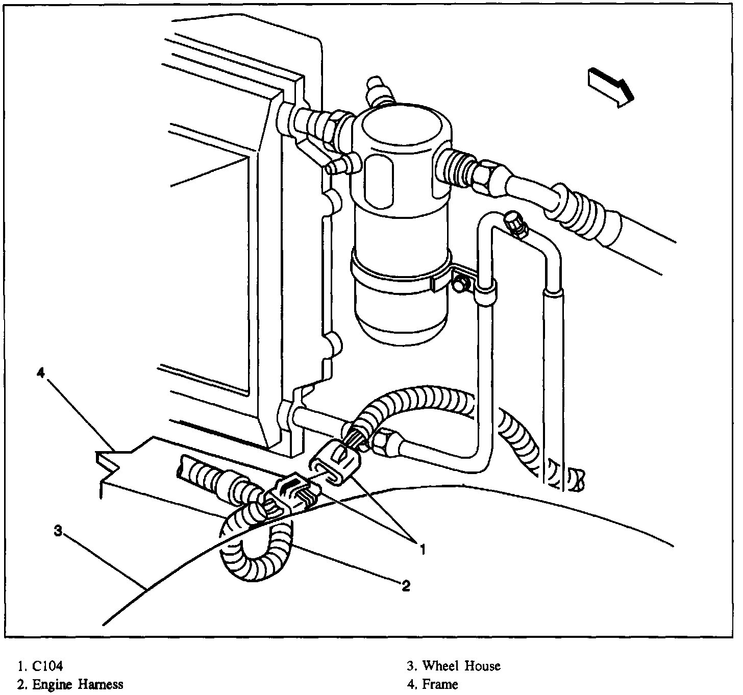 RH Rear Engine Compartment Wiring For Heater Or A/C: