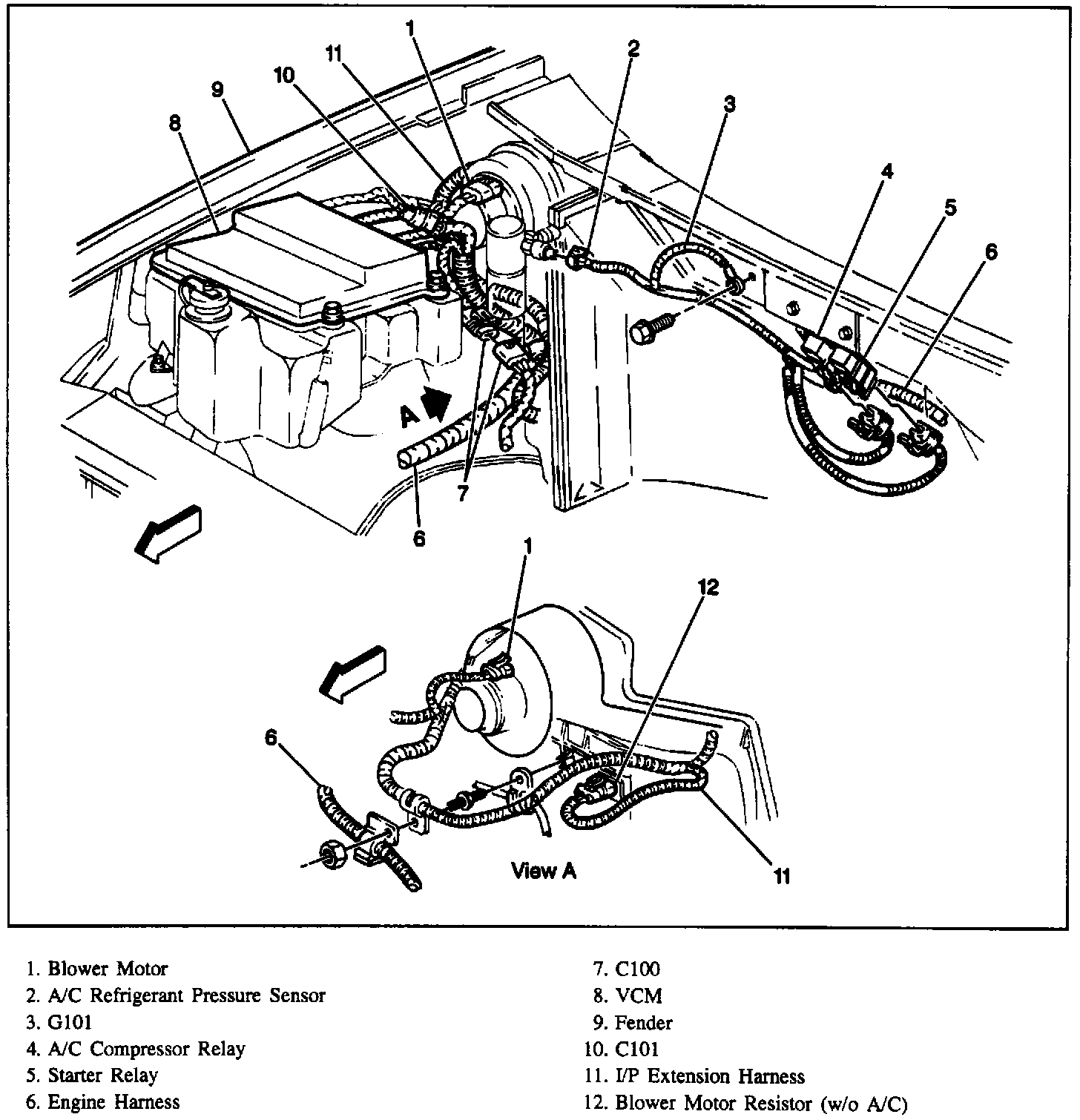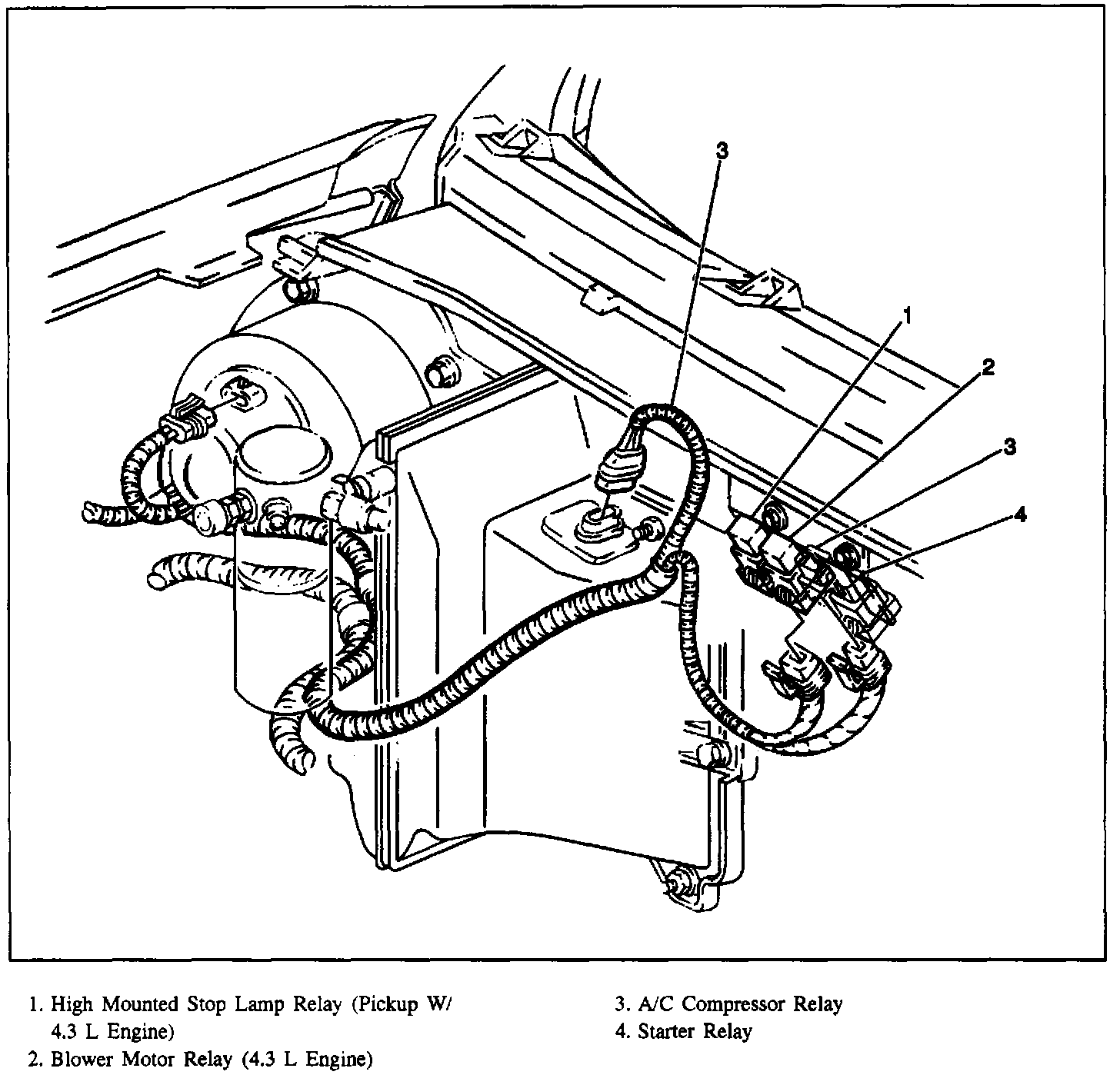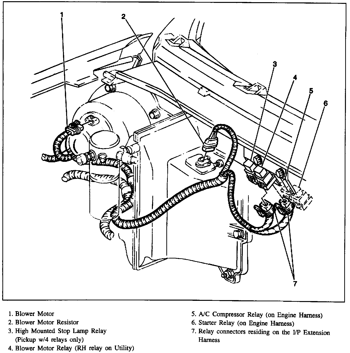 RH Rear Engine Compartment Wiring For Heater Or A/C: