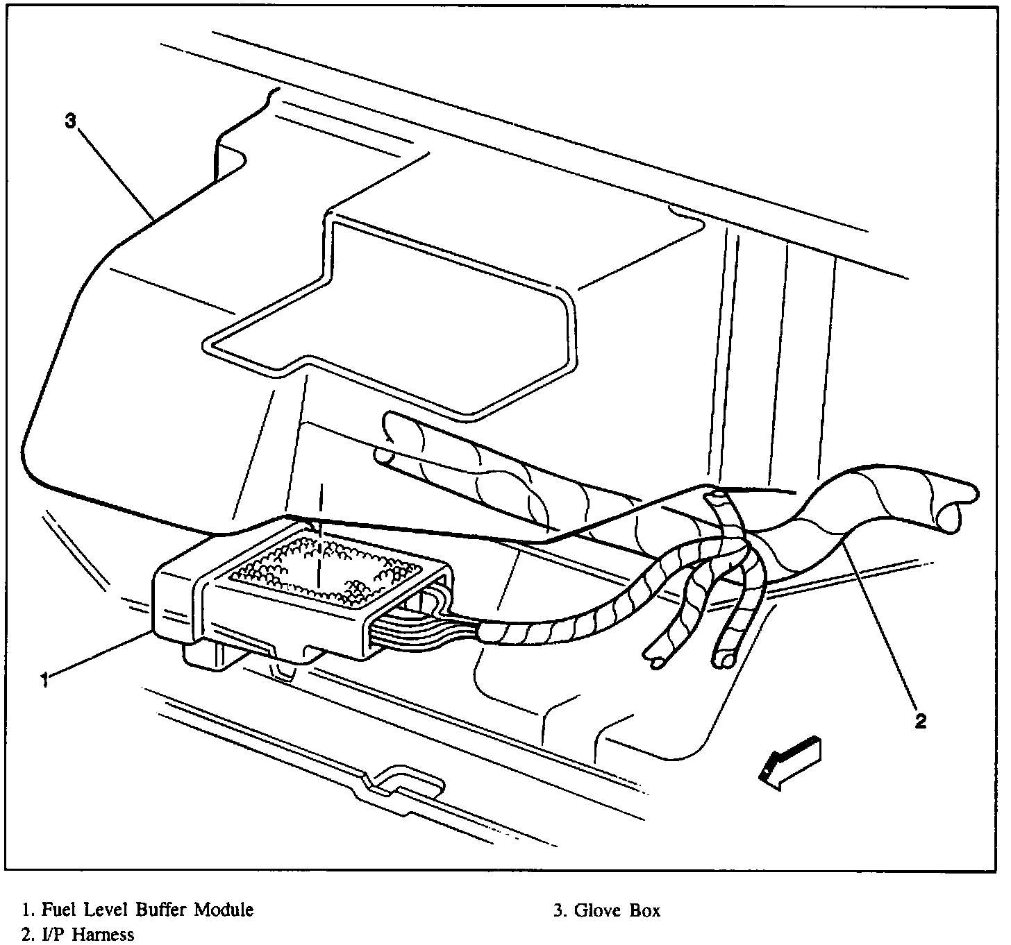 I/P Wiring RH Side, Fuel Level Buffer Module: