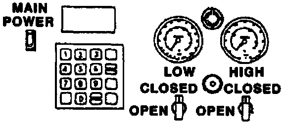 ^ Digital Display--Shows the time programmed for vacuum and the weight of refrigerant programmed for recharging. Detailed instructions for programming this display are included in "Digital Display Functions".