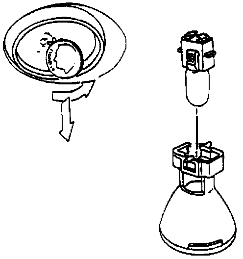 ^ Use the edge of a coin or a small screwdriver to press the lamp assembly upward and turn counterclockwise to remove.