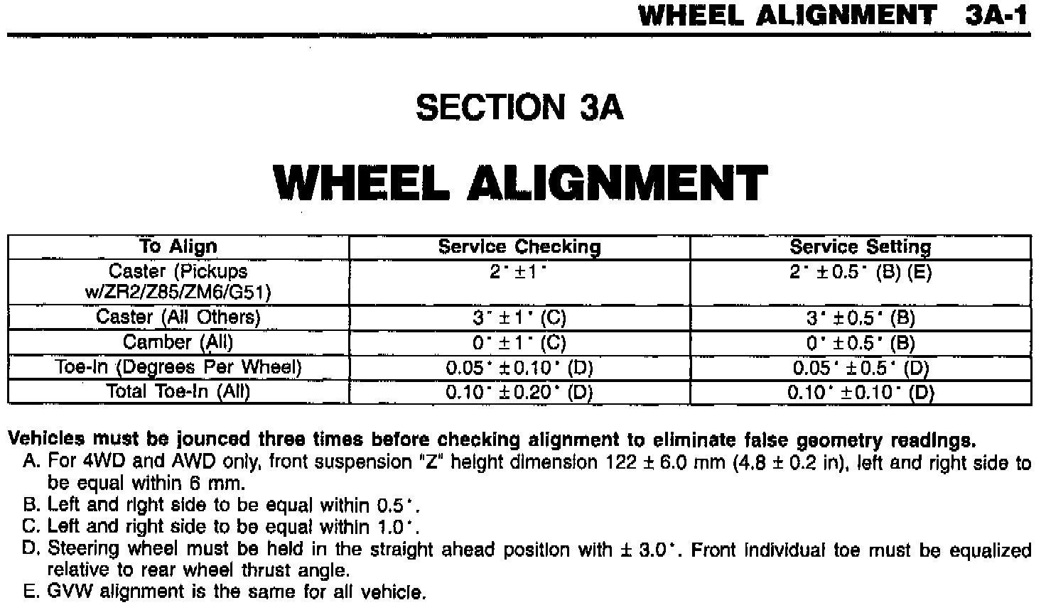 This bulletin revises the wheel alignment specifications chart in the 1997 S/T