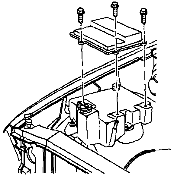 3. Remove the mounting hardware. Remove the VCM from the engine compartment.