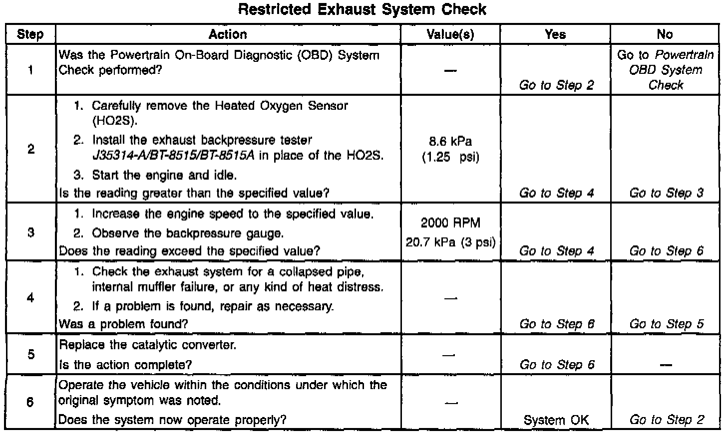 System Check - Restricted Exhaust