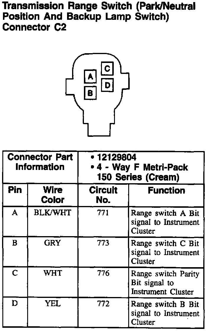 Transmission Range Switch (PNP And Backup Lamp Switch) Connector: C2: