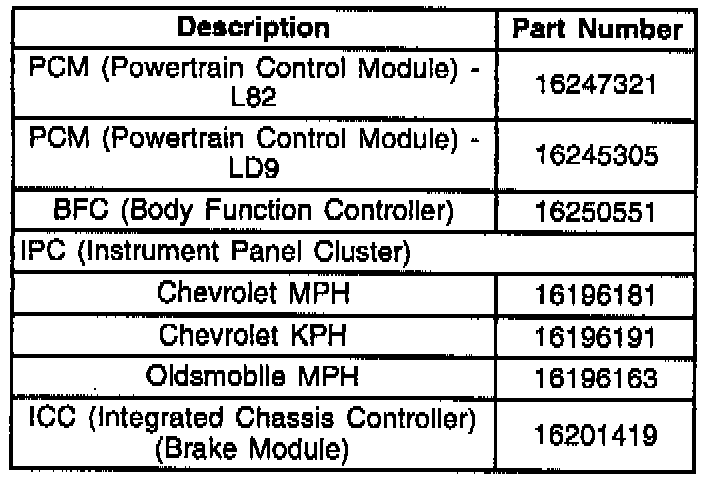 ^ PCM, BFC: The Technical Assistance Center will arrange for the shipment of a replacement PCM or BFC from GMSPO within 48 hours and provide a case reference number. The core information tag (for PCM) must be completely filled out and include a copy of the repair order (with the case reference number) to aid in product analysis.