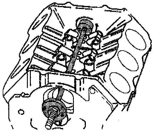 ^ Carefully rotate and pull the camshaft out of the camshaft bearings.