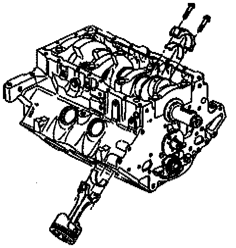 CAUTION: This engine has side bolts on all of the main caps except the rear cap. These bolts must be removed to service the caps.