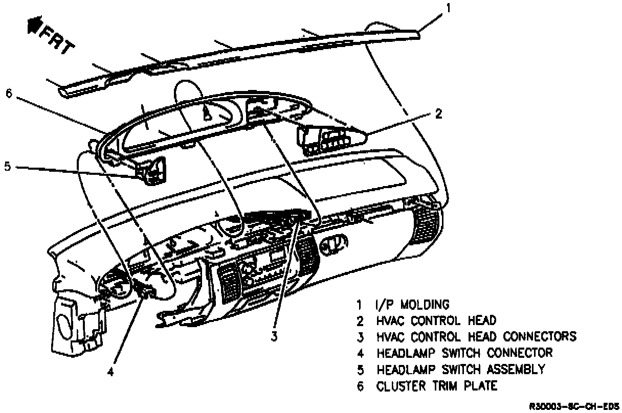 1. Windshield defroster grille from I/P by prying upward, disconnect sensors (if equipped).