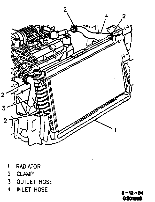 2. Inlet and outlet radiator hoses to radiator.