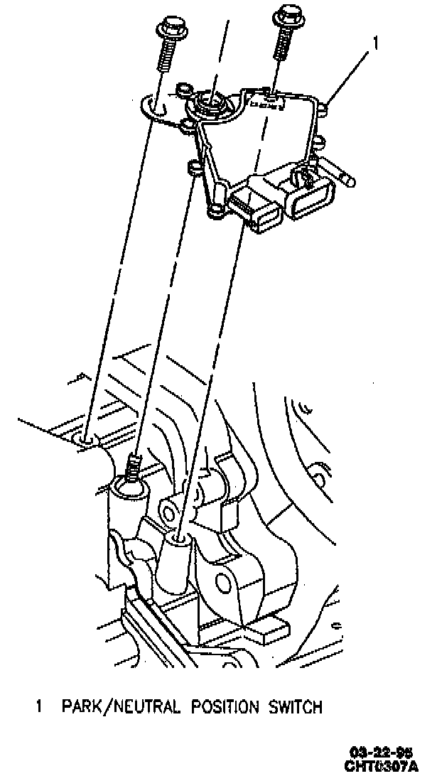 ^ After park/neutral position switch installation, verify that engine starts only in "Park" (P) or "Neutral" (N). If engine starts in any other position, readjust park/neutral position switch.