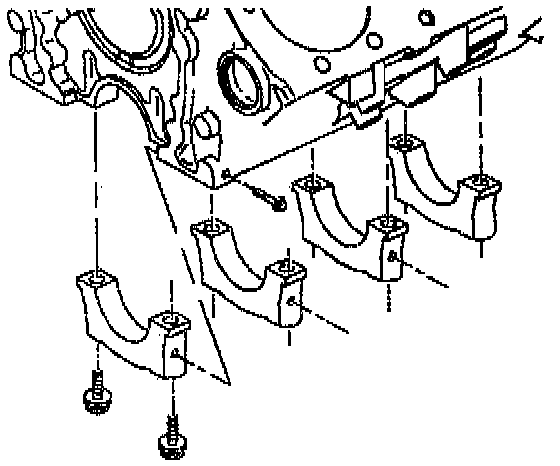 Install the main bearing cap bolts. Start the main bolts by hand. Ensure that the bottom of the cap is parallel to the bottom of the channel.