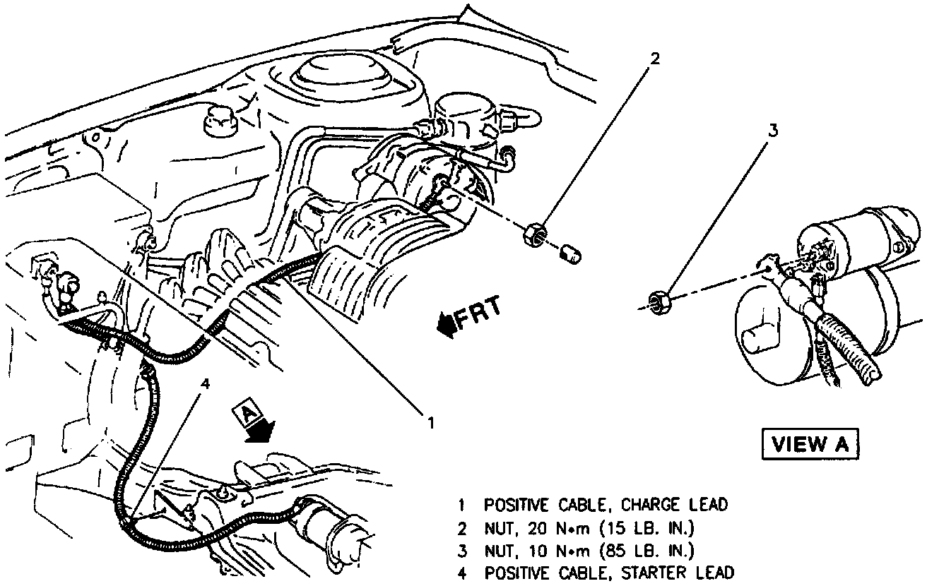 Whenever battery cables are replaced be sure to use a replacement cable that is the same type and length. Some positive cables have additional feed wires attached to them and some negative cables have additional ground leads attached.